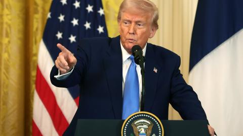 US President Donald Trump listens to questions from reporters after speaking on economic data in the Oval Office on August 7, 2025, in Washington, DC. (Win McNamee via Getty Images)