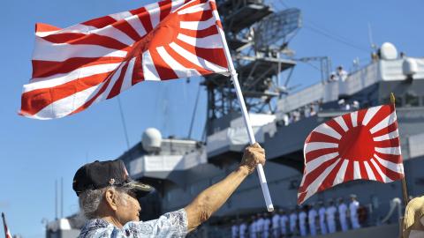 Korean President Yoon Suk Yeol, US President Joe Biden, and Japanese Prime Minister Kishida Fumio arrive for a joint news conference following three-way talks at Camp David on August 18, 2023, in Camp David, Maryland. (Chip Somodevilla via Getty Images)