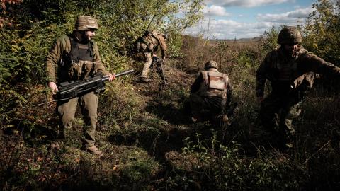 Members of the Wagner Group prepare to depart from the Southern Military District's headquarters and return to their base on June 24, 2023, in Rostov-on-Don, Russia. (Stringer/Anadolu Agency via Getty Images)